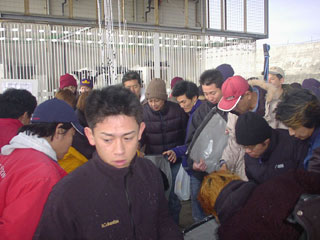 あたたかいうどんのサービス。その後、参加者のみなさんはフィールドへ。