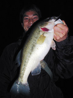 - 丹沢湖でブラックバス53センチを釣り上げた吉田昌弘さん。