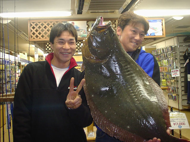 50kgまで量れるバネ秤で、目盛りが約10kgを指しています。これは記録物ですね。8ポンドテストライン(ヒラメ)の記録を調べたところ、IGFA の世界記録が9.1kgだということがわかりました。ということは世界記録か?!(計量に使ったバネ秤を添えて記録を申請中)とにかく、このサイズのヒラメが湘南海岸で釣れたことが驚きです!