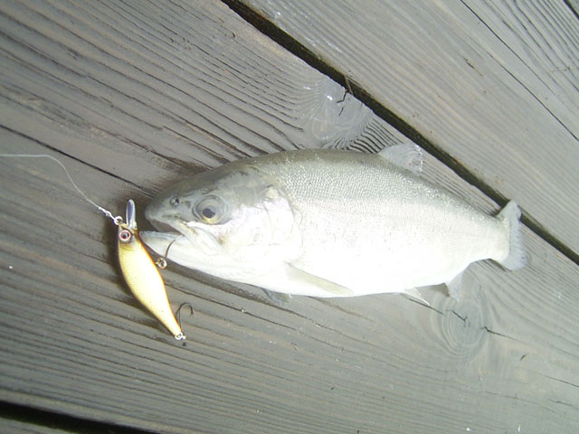沼田さんもブラウンマスをキャッチ (ルアー:バッセル)