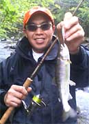 水面でバイトしてくるヤマメのアタックに大興奮でした。