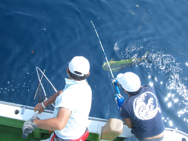 おっとー、赤嶺さん、またしてもウッドベイトで113cmをゲット。入れ換え成功です。そして、堀江さんはハルシコ40gで119cmをゲット。本日の2位になった見事な魚体です。