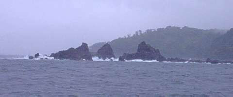 頭をスッパリとカットした初島が見えてきた。が、こっちは水色も悪く、鳥も少ない。ベイトの目安となる鳥が居ないということは、確率も少ないということ。