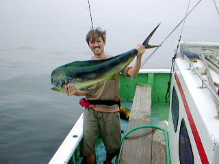 他のアングラーのマナーも良く、船上では4名の為にキャストを待っていてくれる。が、ポロリポロリとフックアウトやラインブレイク・・・・・。なんてこったい。最後に残った一本を時間をかけてランディング。これが、全長125cmのビッグワン。あ〜、他のサイズが同サイズだとしたらなんて勿体ないことを!ダレとは言いませんが、O氏!フックがサビサビではマグナムサイズのシイラにはフックアップしませんぞ!