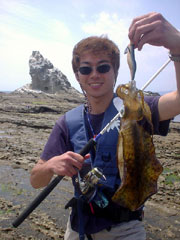 湘南の海にいつも浮かんでる烏帽子岩。『あそこでエギングをしたら面白そう』 という話になり、2週連続で渡ってきました。1回目の渡船は5月23日。この日の同行者は福田さん。